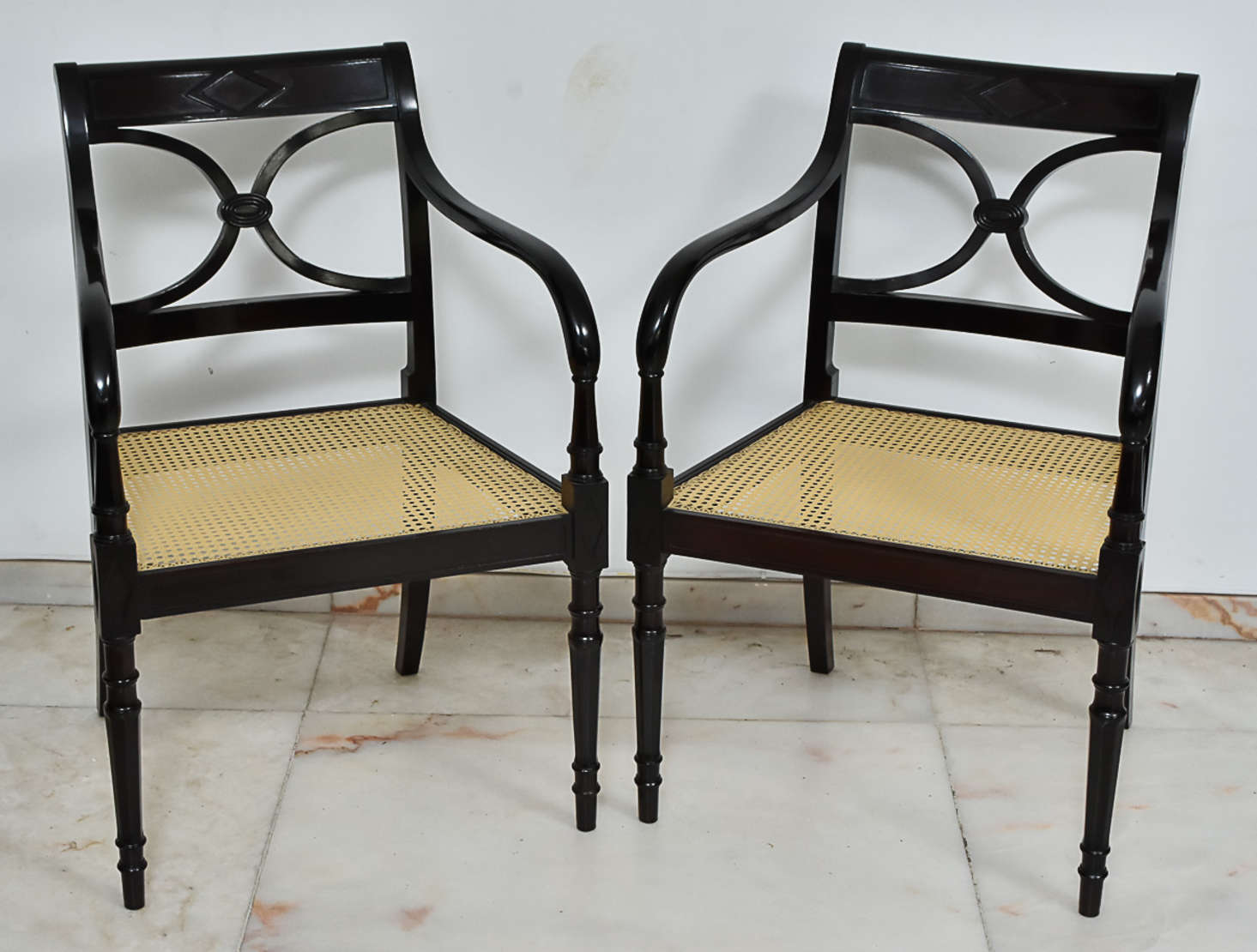 Quatro cadeiras estilo inglês com assento e encosto em palhinha.