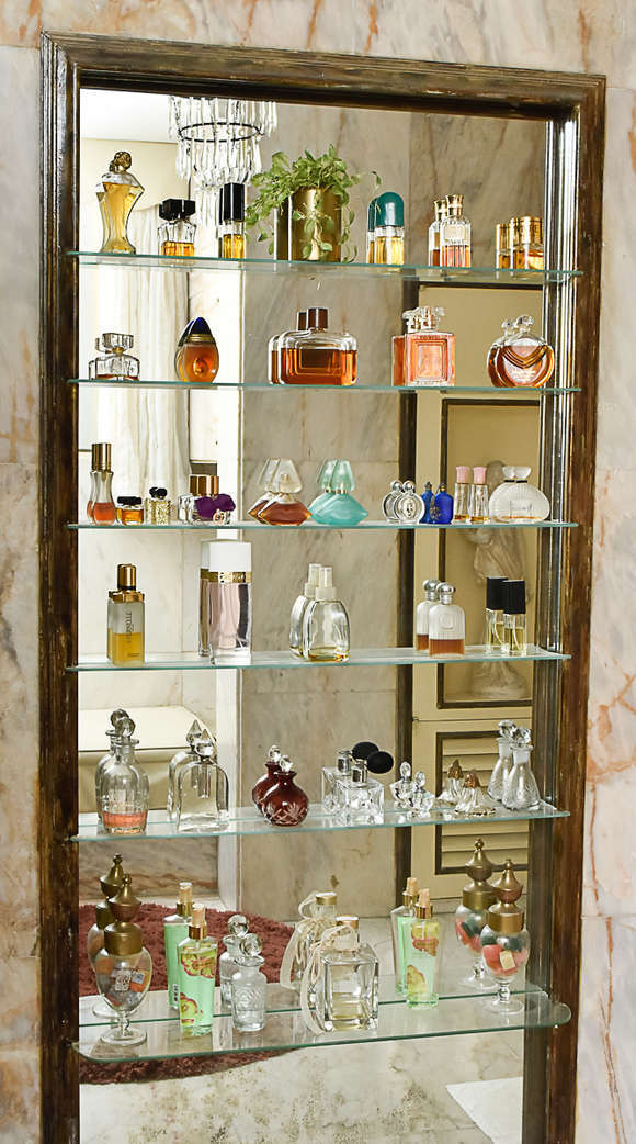 Trinta e quatro frascos de perfumes, diversas procedências. Acompanham dois porta sabonetes e um recipiente para sabã...