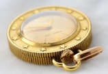 Relógio de viagem cor navin em plaque or, embalagem de couro marrom, medindo 37 mm de diâmetro;,movimento mecânico, f...