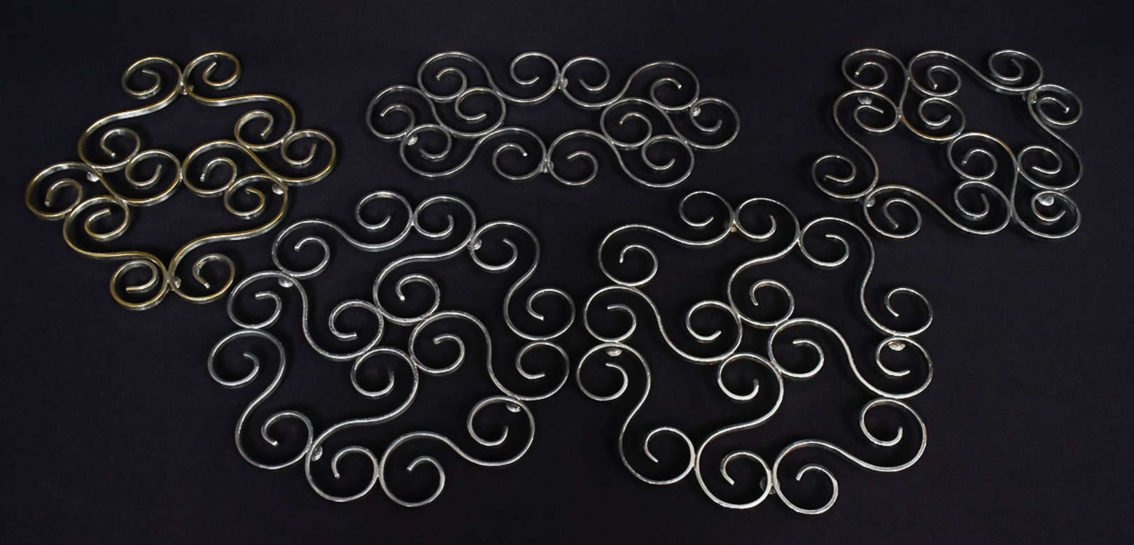 Oito sousplat em metal prateado com borda oitava, marca Riva.