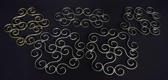 Cinco descansos para mesa em metal "Wolff" desenhos em "S".